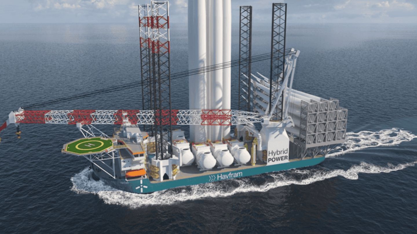 Por ejemplo, en 2023 ABB consiguió un pedido para suministrar una solución integrada de puente a hélice para los dos nuevos buques de instalación de turbinas eólicas de Havfram Wind. Los buques, que incorporan la última tecnología de transmisión híbrida con baterías y la propulsión eléctrica Azipod® de ABB, estarán entre los diseños más eficientes energéticamente para operar en la industria eólica marina. (Imagen a continuación)