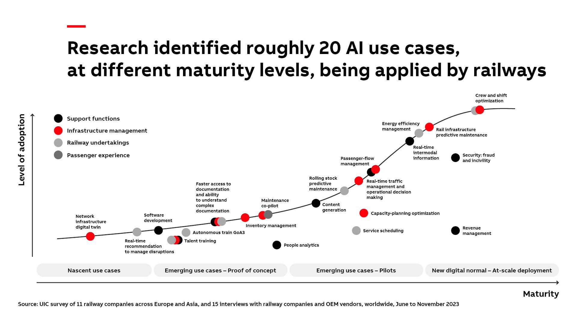 La digitalización está transformando la industria ferroviaria3 a través de IA, IoT y análisis de big data, lo que permite el mantenimiento predictivo, la optimización de la red y niveles mejorados de eficiencia operativa.