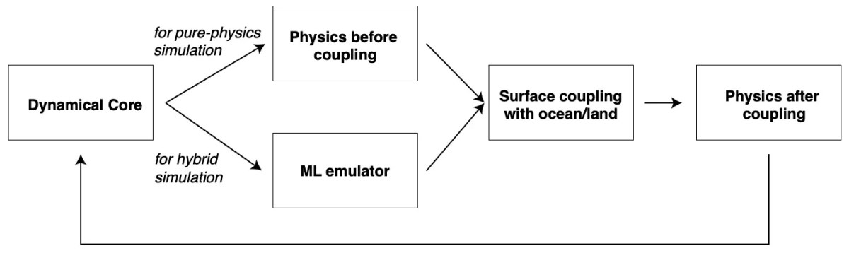 Y vimos simulaciones estables de cinco años con modelos explícitos de condensado de nubes, geografía real y acoplamiento tierra-atmósfera, un hito no demostrado anteriormente en esta clase de simulaciones híbridas.